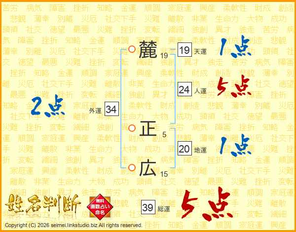 麓正広さんの総運は39画の5点!