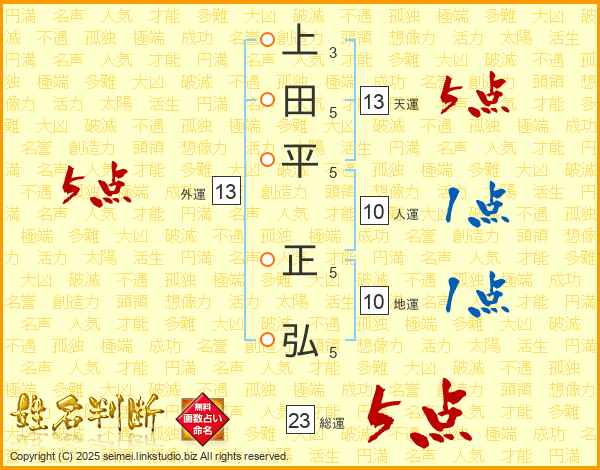 上(3画)田(5画)平(5画) 正(5画)弘(5画)