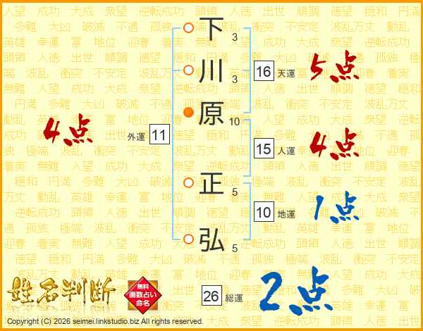 下川原正弘さんの総運は26画の2点!