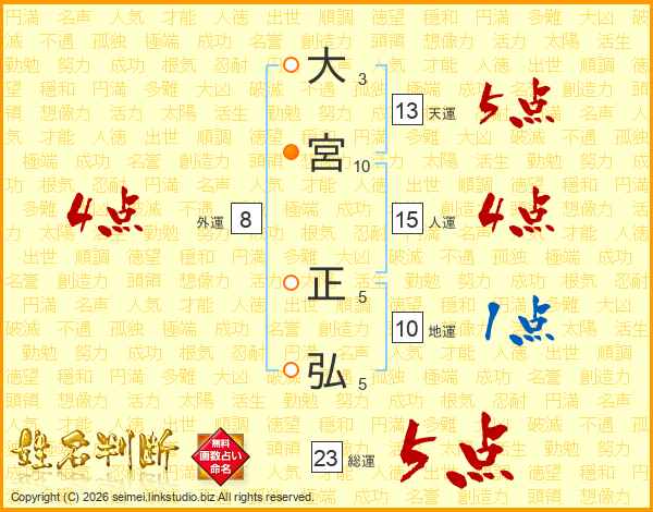 大宮正弘さんの総運は23画の5点!