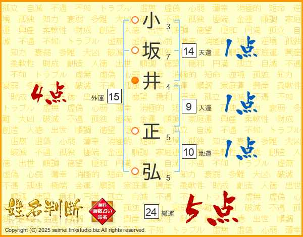 小(3画)坂(7画)井(4画) 正(5画)弘(5画)