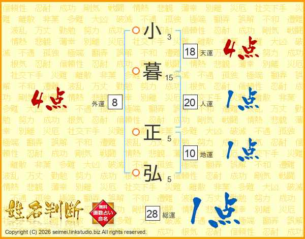 小暮正弘さんの総運は28画の1点!