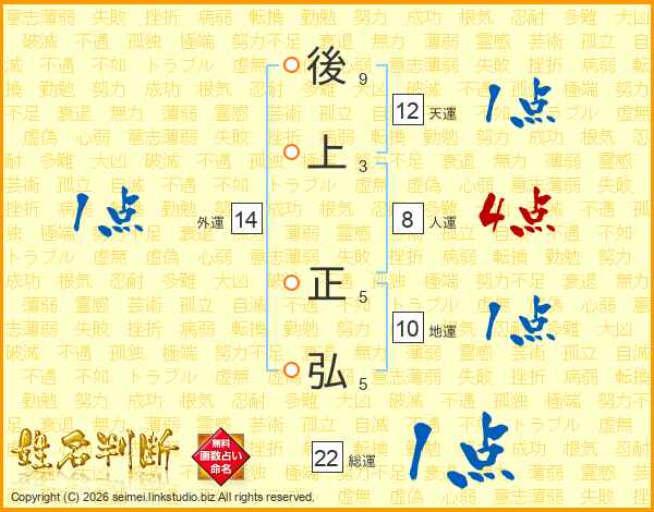 後(9画)上(3画) 正(5画)弘(5画)