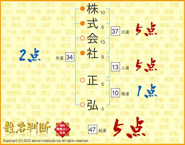 株(10画)式(6画)会(13画)社(8画) 正(5画)弘(5画)