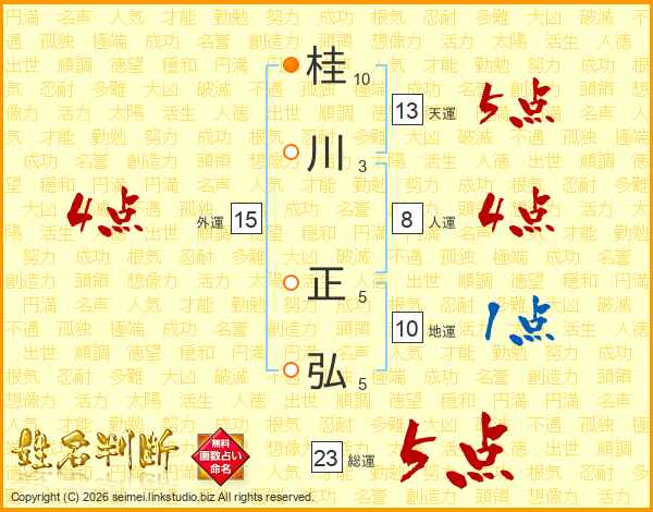 桂川正弘さんの総運は23画の5点!