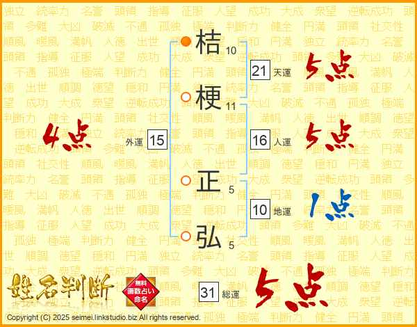 桔(10画)梗(11画) 正(5画)弘(5画)