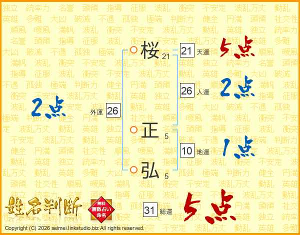 桜正弘さんの総運は31画の5点!