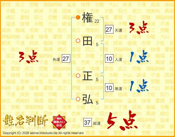 権(22画)田(5画) 正(5画)弘(5画)