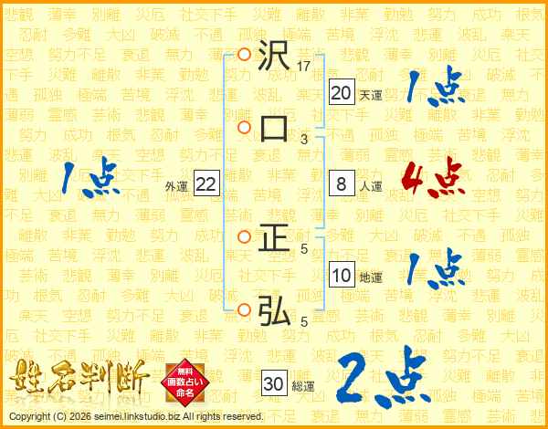 沢(17画)口(3画) 正(5画)弘(5画)
