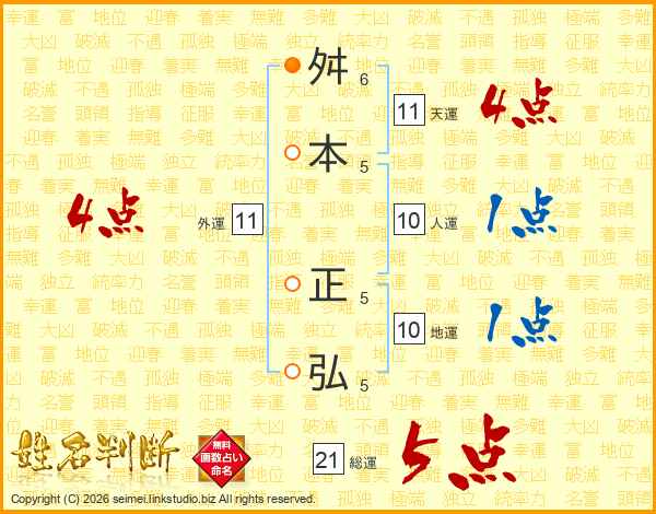 舛本正弘さんの天運は11画の4点!