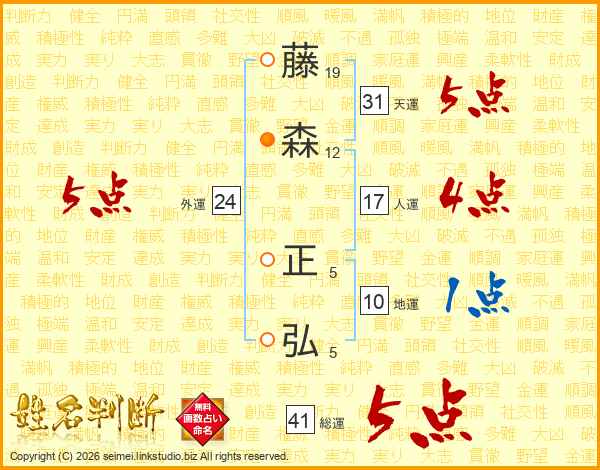 藤(19画)森(12画) 正(5画)弘(5画)
