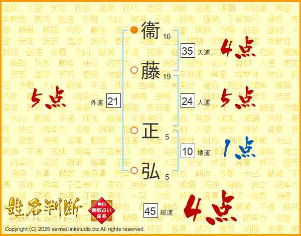 衞藤正弘さんの総運は45画の4点!