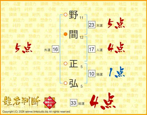 野間正弘さんの天運は23画の5点!