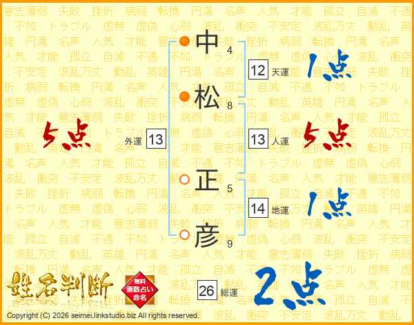 中松正彦さんの総運は26画の2点!