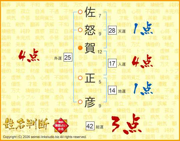 佐怒賀正彦さんの人運は17画の4点!