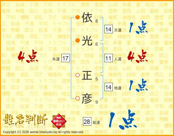 依(8画)光(6画) 正(5画)彦(9画)