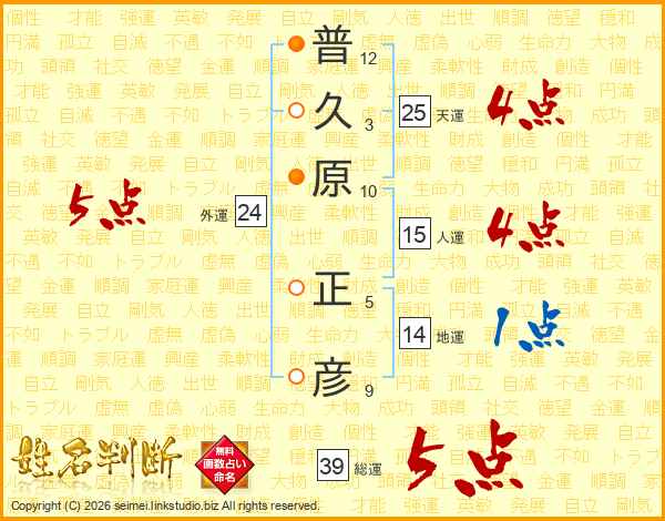 普久原正彦さんの総運は39画の5点!