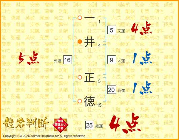 一井正徳さんの総運は25画の4点!