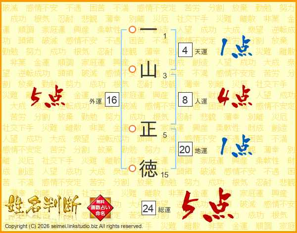 一山正徳さんの総運は24画の5点!