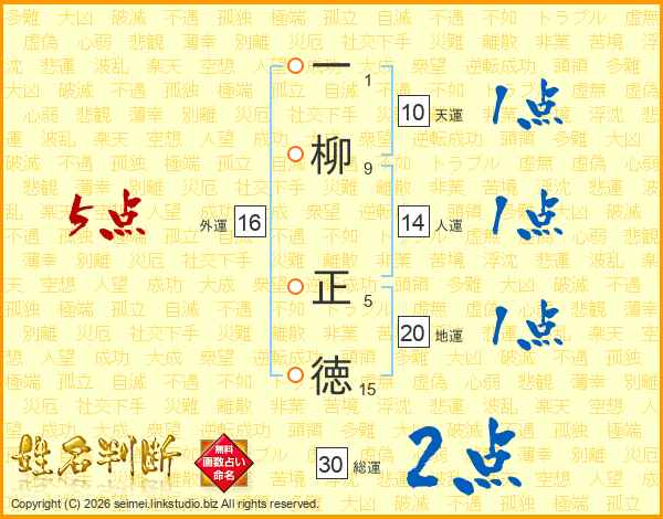 一柳正徳さんの総運は30画の2点!
