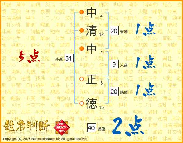 中清中正徳さんの総運は40画の2点!