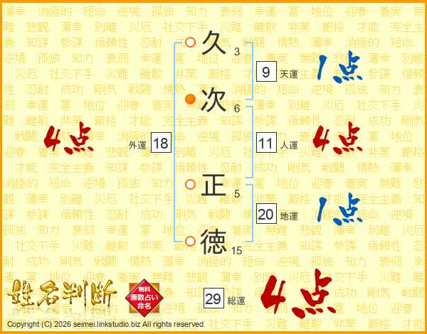 久次正徳さんの人運は11画の4点!