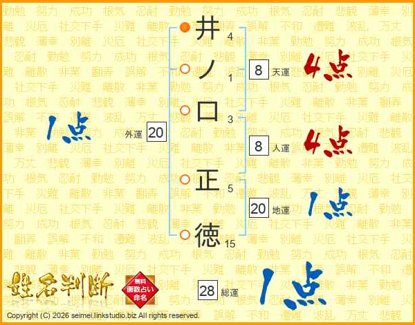 井(4画)ノ(1画)口(3画) 正(5画)徳(15画)