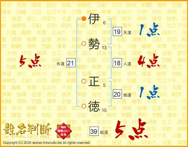 伊勢正徳さんの総運は39画の5点!