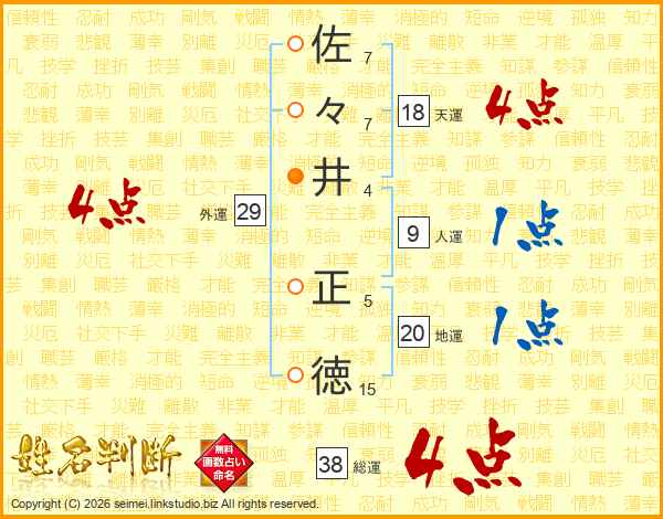 佐々井正徳さんの総運は38画の4点!