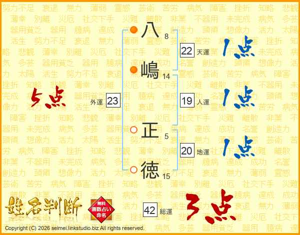 八(8画)嶋(14画) 正(5画)徳(15画)
