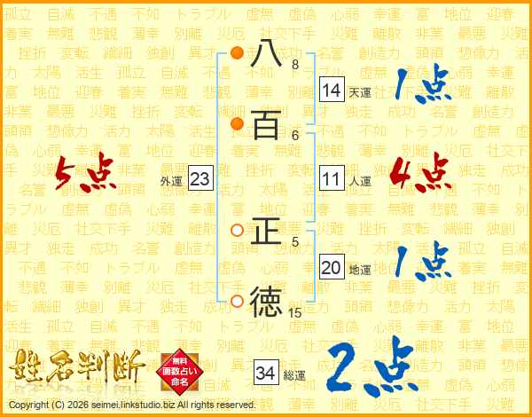 八百正徳さんの人運は11画の4点!