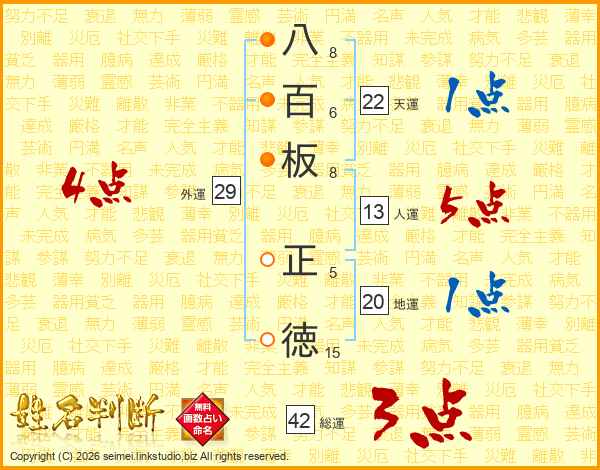 八百板正徳さんの人運は13画の5点!