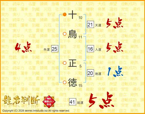 十(10画)鳥(11画) 正(5画)徳(15画)
