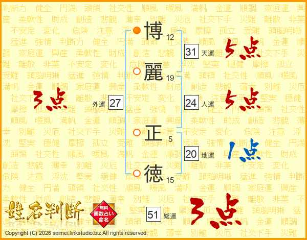博麗正徳さんの天運は31画の5点!