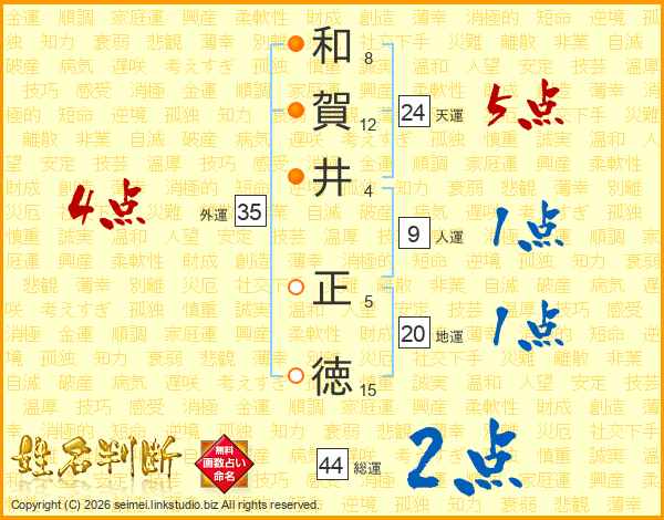 和(8画)賀(12画)井(4画) 正(5画)徳(15画)