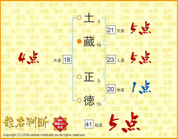 土藏正徳さんの総運は41画の5点!