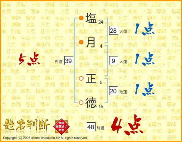 塩(24画)月(4画) 正(5画)徳(15画)