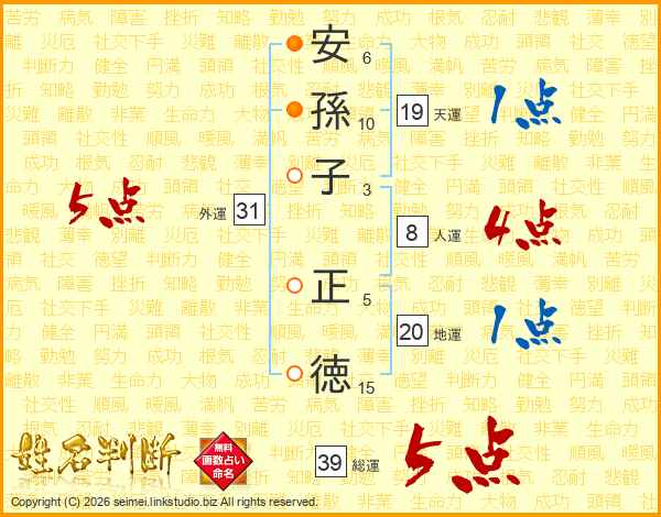 安孫子正徳さんの総運は39画の5点!