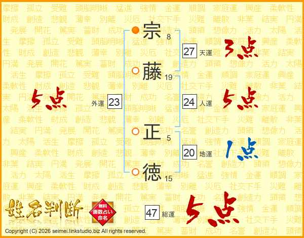 宗藤正徳さんの総運は47画の5点!