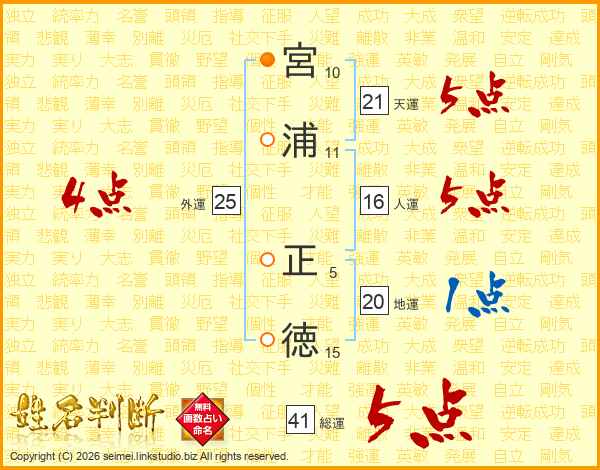宮浦正徳さんの総運は41画の5点!