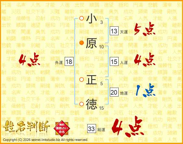 小原正徳さんの総運は33画の4点!