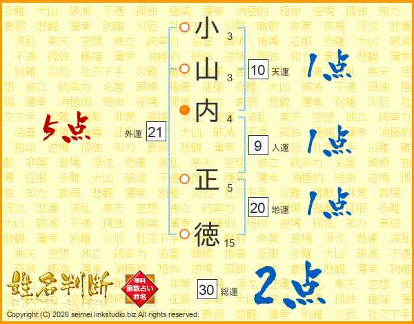 小山内正徳さんの総運は30画の2点!