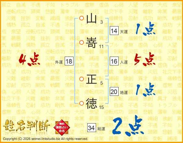 山(3画)嵜(11画) 正(5画)徳(15画)
