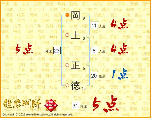 岡上正徳さんの総運は31画の5点!