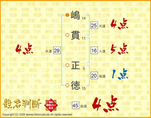 嶋貫正徳さんの総運は45画の4点!