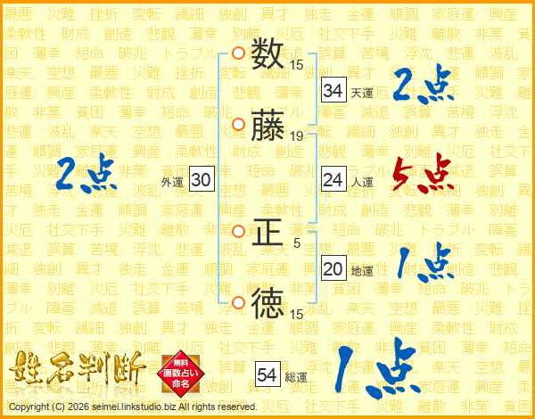 数(15画)藤(19画) 正(5画)徳(15画)