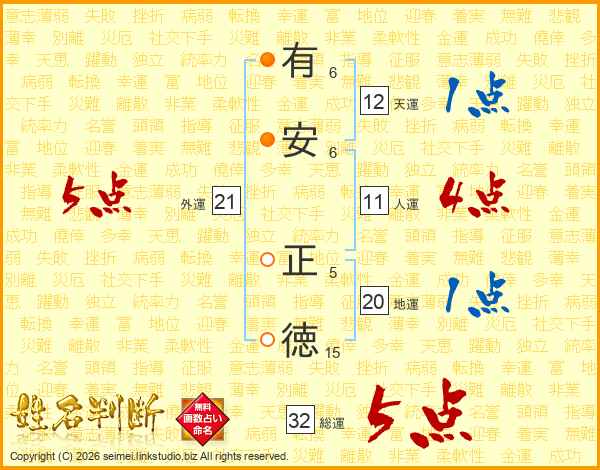 有安正徳さんの総運は32画の5点!