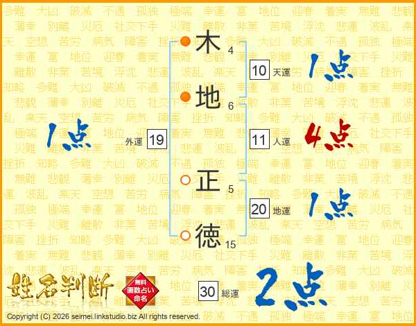 木地正徳さんの人運は11画の4点!