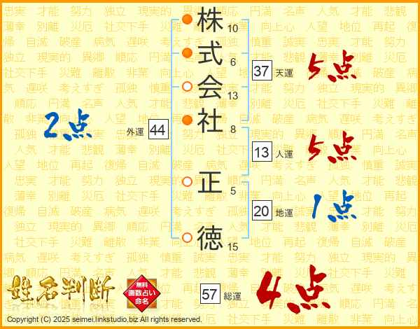株式会社正徳さんの天運は37画の5点!