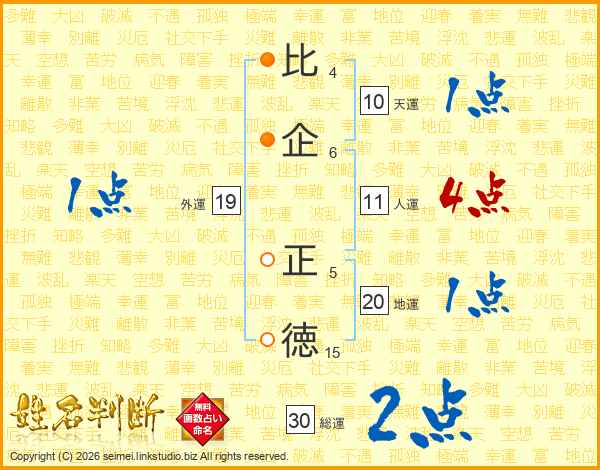 比企正徳さんの人運は11画の4点!